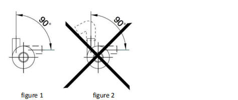 6: Il tubo collegato dovrebbe essere montato verticalmente (o non non si fi strada 20cm) per fare l'aria scaricata facilmente, il tubo di scarico non dovrebbe essere usato più di meno di 90 gradi sgomitano (si veda figura 2).