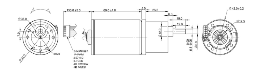 la CC senza spazzola ha innestato il motore, la dimensione del motore è piccola, il diametro è 42mm, la velocità può raggiungere 3000rpm, la tensione è 12-24V ed il potere è 20-100W. Questo motore senza spazzola a magnete permanente può essere ampiamente usato: quali rollingcurtain automatico, la pompa contorcentesi, ecc.