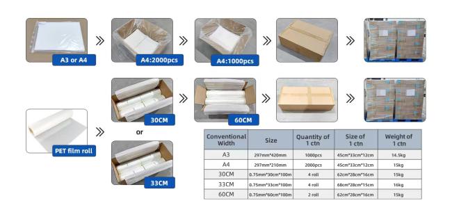 Personalizza la pellicola di trasferimento PET DTF Easy Peeling Hot Cold Peel Dtf Progress per il trasferimento a caldo